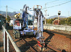 (左)池谷駅舎から陸橋を (中)この作業車は路面・レールの両方を走行可能なんですネ  (右)池谷駅舎を撮りました(^.-)☆
