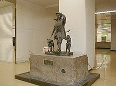 (右)岡山駅構内で 桃太郎の像です(^.-)☆