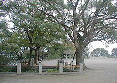 (右) 竜王さんのクスです 樹齢推定600年のようですけど、昭和9年(1934)の室戸台風で倒れましたようですネ…