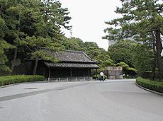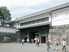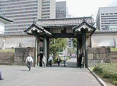 旧江戸城の正門であって、大名や役人が本丸に登下城する門。最も警備の厳重な典型的な枡形門で、外側に面してた門を第一の門(高麗門)、内側の門を第二 の門(渡櫓門)という。出入り口が広くないのは敵の侵入を防ぐためです。壁は白亜総漆喰塗り、城門は燻(ふすべ)と言う銅を熱処理したものが張ってある。 また、門外の堀端に下馬札がたっていた。付き人達はここで主人の帰りを待っていて、各藩の情報を交換していた。これより下馬評と言う言葉が生まれた。