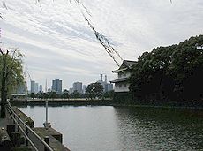 明治元年(1868)皇居となるまで徳川の居城であった。江戸城は、徳川の入国後、家康、家光の三代にわたってしだいに拡大強化され、寛永13年 (1636)外郭の城門を完成させてわが国最大の城郭となった。