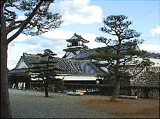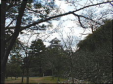 (左)御台所屋敷跡 (中)(右)御台所屋敷跡から天守閣を
