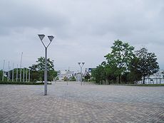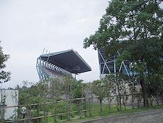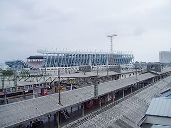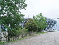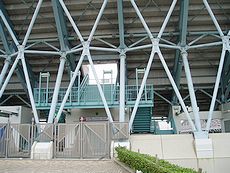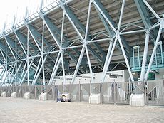 25,000人収容の3階建てスポーツ競技場。国内最初の純鉄骨造りの観覧スタンドを持ち、市内遺跡出土の銅剣をモチーフにしたスタンドの支柱が偉容を誇ります。