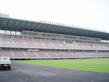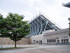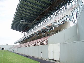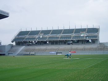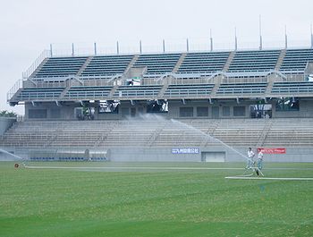 ↑↓ いずれも鳥栖スタジアム内の光景です(^.-)☆ 蒸し暑い中で芝の手入れをしておられました(^-^)/
