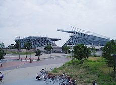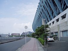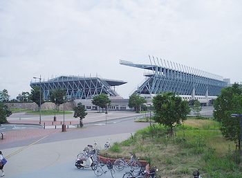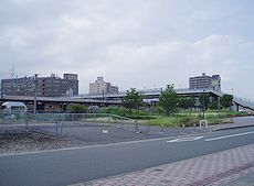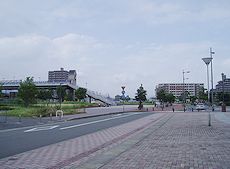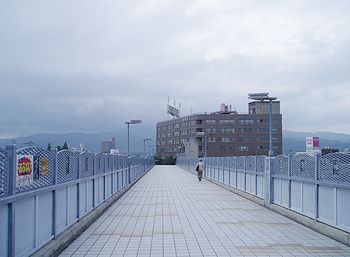 (左)虹の橋から鳥栖スタジアムを (右)また虹の橋を渡りまして駅東口方向へ