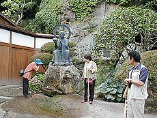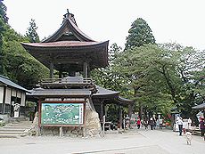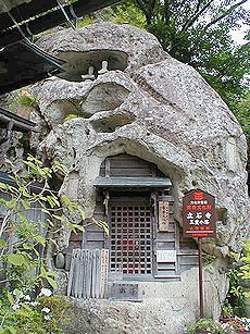 (左) 抜苦門から鐘楼方向を (中)抜苦門 (右)立石寺本坊横の羅漢像を この水を口にしますと頭が良くなるそうですよ(^_^)v