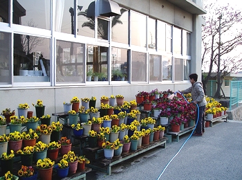 投票開始にはまだ1時間ありますから、暫し選挙用のポスター掲示板、校庭の一角に存在のサクラ、会場入口等を画像に納めていますと2番目の方が来られましたねぇ〜