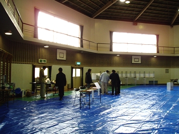 15分ばかりこの方と一緒に体育館入り口で待機しておりましたら、投票所のお世話をされます方々が一人、二人と6:30頃より到着です。