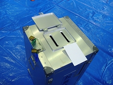 受付を済ませ投票用紙を貰い、一番乗りのGONsanが投票箱のチェック確認です。