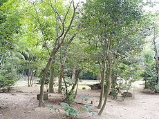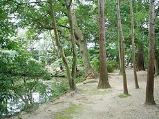 中島は、高さ約1bの巨石を建てて鶴石とし、島全体を亀の形に造り蓬莱島としている。
