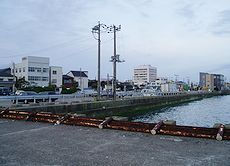 銚子駅です (中)利根川河口近くの景観です (右)利根川河畔から銚子市内を