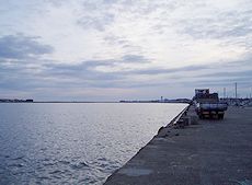 (中)銚子港の景観です (右)飯沼観音に向かいます路上の景観です