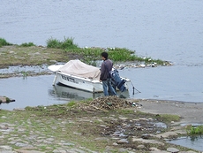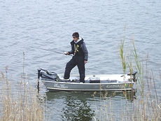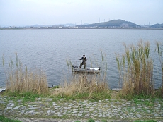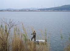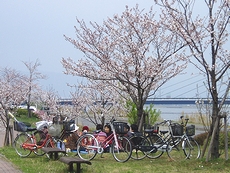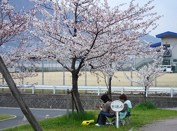↑↓ サクラ並木の土手下の芦田川では、花見なんぞには眼もくれずに釣りに熱中の若者です(^_^)v