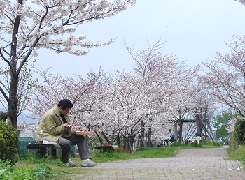ご家族連れ、仲のイィ仲間のグループ、仲睦まじいご夫婦、勤務中の昼食時でお独りで寂しそうな男性…と実に様々。このテニスコート横のサクラ並木は、我が町内ではGONsanが一番好きな場所なんですけど、それなりに賑わっておりましたネ(^.-)☆