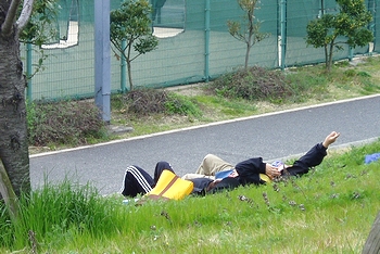 (左)土手の上で横になって…気持ちイィでしょうねぇ〜でもチョッと寒いかも(^-^)