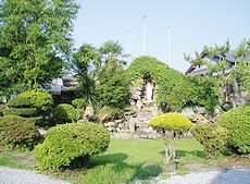 (左)昼食時にタマタマ入りましたレストランの窓越しに (中)(右)臼杵を去ります前に再度、上臼杵駅近くの福良天満宮に参拝でした