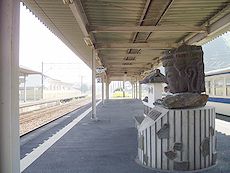 ↑↓ 臼杵駅構内で ここにも仲々立派な石仏の複製がありました(^_^)v