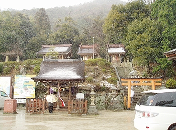 神社内の駐車場に車を止め参拝となりましたけど、こんな天候にも拘わらず10人ばかりの方々が参拝しておられます(^_^)v