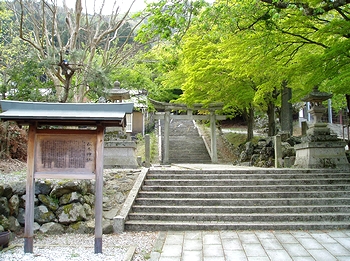 白石神社:小浜藩主の酒井忠勝や山の神を祭っているとされています。神社からさらに上へのぼっていくと、熊川城跡があります。