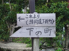昔、敵の突進を防ぐために作られた曲り角です。下ノ町と中ノ町の境にある曲り角です。角には駐在所があります。