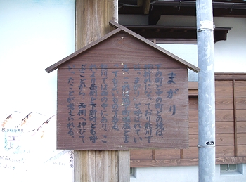 まがり:しばらく行くと、道がくの字に折れ曲がったところに差しかかります。ここは「まがり」と呼ばれ、古来、まちの防衛の要所でした。武器を保管したり、敵を待ち伏せしたりするのに活用されたといわれています。