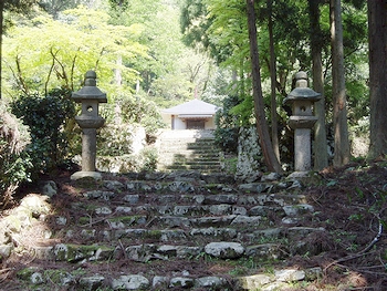 (左)(右)昭和36年の台風で倒壊し、同49年に再建された小野寺の仮本堂。巨石の石垣が往時の面影を偲ばせます。