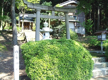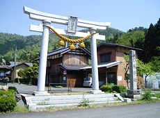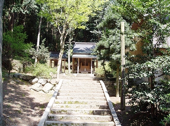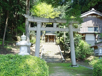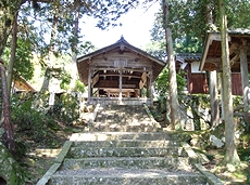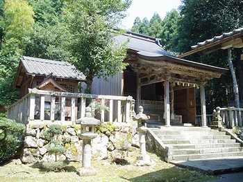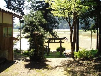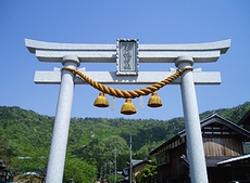 太良庄東端に一見して気づく大きな両部鳥居があり、神亀5年(728)の勧進と伝える日枝神社が鎮座する。