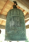 その鳥居から参道400m歩むと神殿があり、その右側の鐘楼に梵鐘がある。