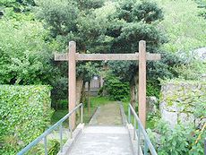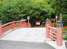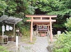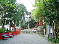 市街地の西、千穂ヶ峰の南端に鎮座する。ゴトビキ岩を御神体とし、高倉下命・天照大神を祭神としている。熊野三所大神の降臨の地であり日本書紀に熊野神邑の天ノ磐盾と記載されている。絶壁の上に、古代の人は神が宿ると信じていた。(JR新宮駅より徒歩15分)