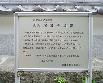 (左)妙心寺の由来の表示板が… (中)妙心寺です