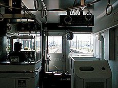 (左)JR鳥栖駅構内で (中)JR長崎本線列車内で、運転席・