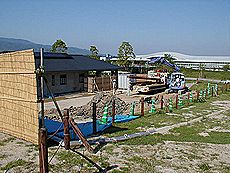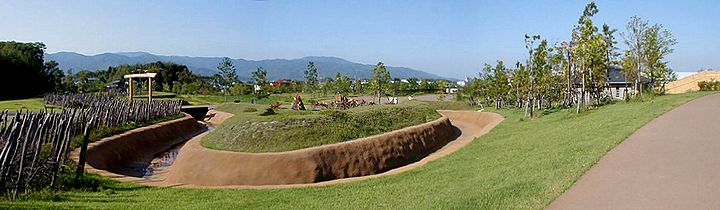 (左)出土品の展示室です(^.-)☆ (中)歴史公園の入場口 方向です (右)発掘現場です