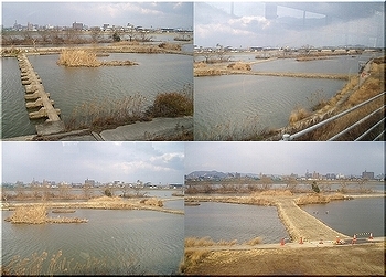 この一帯は中洲の景観も大変キレイですし、人工湿地帯の水質浄化への効果も実に関心をひく問題ですから、遊歩道の設置とは嬉しいですねぇ〜