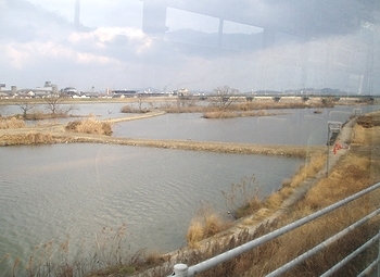 挿入の画像は、今朝、鞆鉄バス車内から人工湿地帯の景観を撮りましたものなんですけど、これらの中洲に遊歩道設置とは本当に嬉しい気持ちですよ(^.-)☆