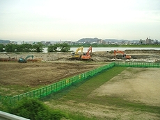 そして、進入路と進入路に挟まれました部分の水抜きを行い、結構広いグランドが出来上がってしまいまして、一体、何の工事をしているのだろぅ?…と、バスで通ります度に車窓から眺めておりましたGONsanです。